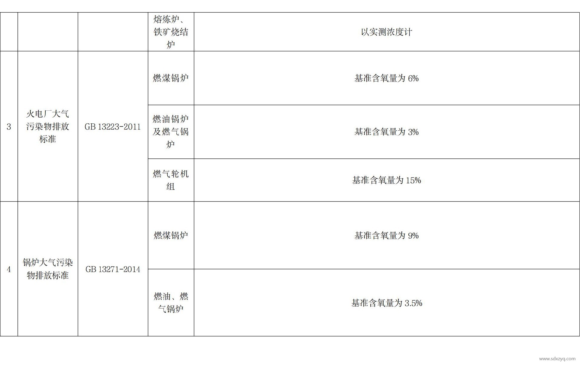 二、基準含氧量折算法: 對于污染物排放標準中規定了基準含氧量的污染源類 型,其污染物排放折算濃度按公式(3)計算