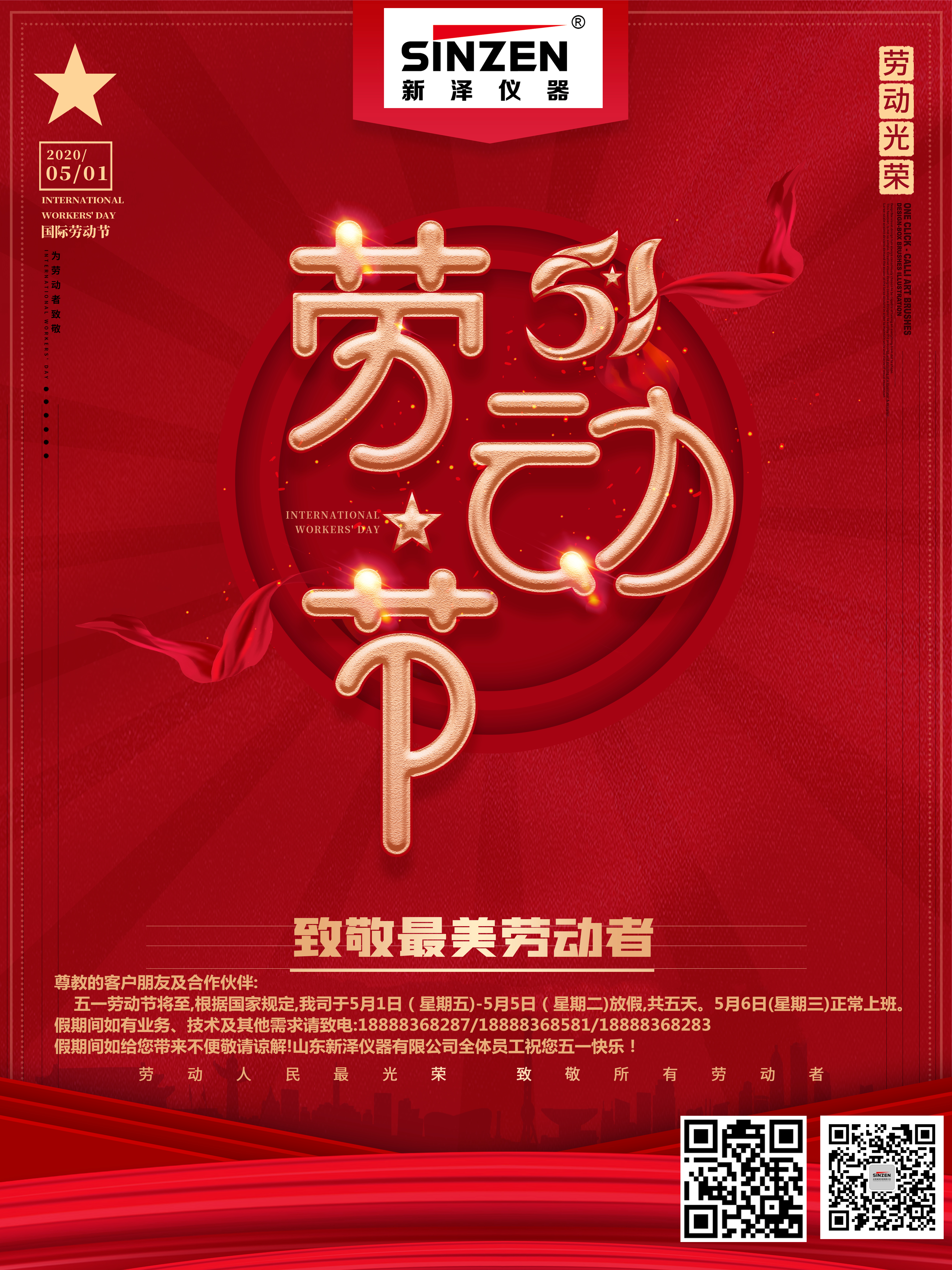假期期間給您帶來的不便敬請諒解,山東新澤儀器有限公司全體員工祝您五一快樂!