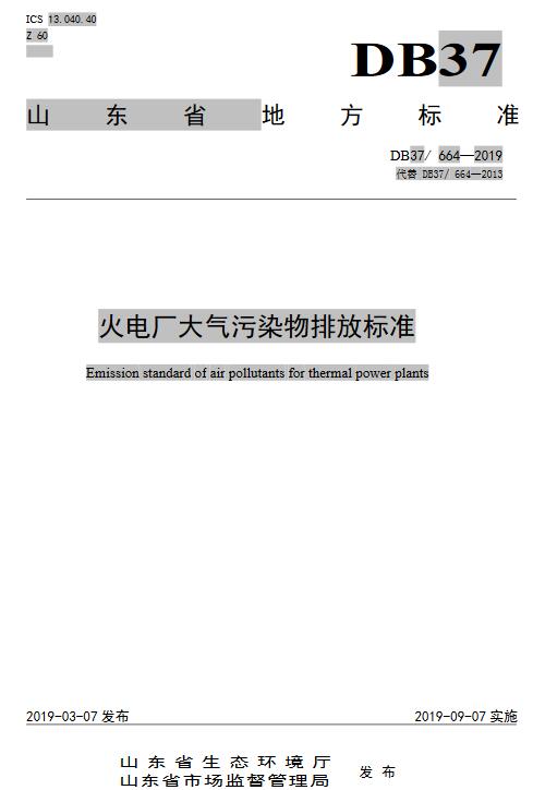 山東:火電廠大氣污染物排放標(biāo)準(zhǔn)(DB37/ 664—2019)