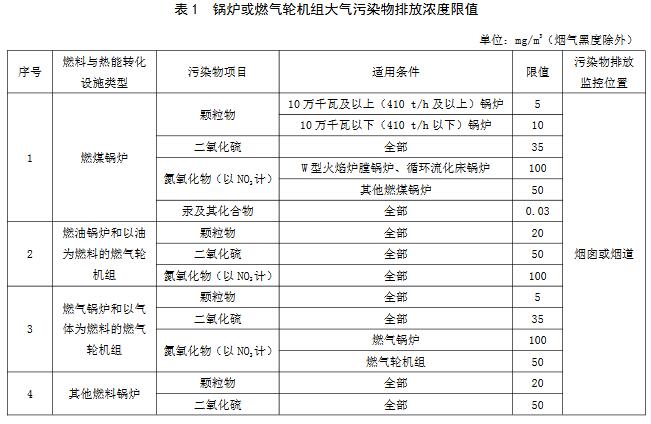 4.12016年9月19日前環(huán)境影響評(píng)價(jià)文件已通過審批的燃煤鍋爐,2016年12月31日前環(huán)境影響評(píng)價(jià)文件已通過審批的燃油鍋爐和以油為燃料的燃?xì)廨啓C(jī)組、燃?xì)忮仩t和以氣體為燃料的燃?xì)廨啓C(jī)組以及其他燃料鍋爐,自本標(biāo)準(zhǔn)實(shí)施之日起至2019年12月31日止,執(zhí)行表1中的排放濃度限值。
