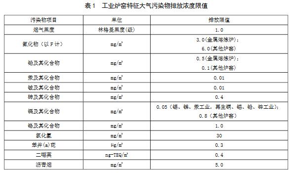 4.1.1新建和現(xiàn)有工業(yè)爐窯自本標準實施之日起,執(zhí)行表1的排放濃度限值。