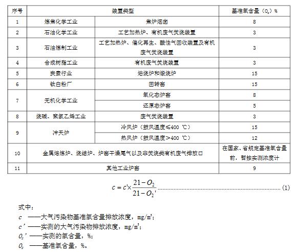 5.2大氣污染物基準氧含量排放濃度折算方法實測的大氣污染物排放濃度,應按表3和公式(1)折算為基準氧含量排放濃度。國家和山東省規(guī)定了行業(yè)單位產(chǎn)品基準排氣量的,按單位產(chǎn)品基準排氣量進行折算。