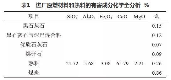 1)對進(jìn)廠原燃材料和熟料的有害成分進(jìn)行化學(xué)全分析,見表1。