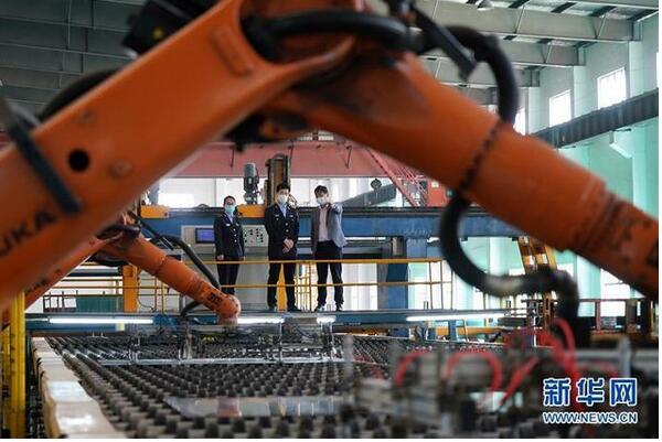 4月23日,河北省沙河市環(huán)境保護(hù)局執(zhí)法人員在河北鑫利玻璃有限公司內(nèi)向企業(yè)負(fù)責(zé)人了解企業(yè)生產(chǎn)情況。2019年起,有“中國玻璃城”美譽的河北沙河市啟動了“煙羽消白”工程,先后投入20億元對在產(chǎn)玻璃生產(chǎn)線實施超低排放改造,并結(jié)合提升廠區(qū)環(huán)境、優(yōu)化產(chǎn)能等措施,削減粉塵、二氧化硫、氮氧化物等污染物排放,推進(jìn)大氣污染治理。 新華社記者 牟宇 攝