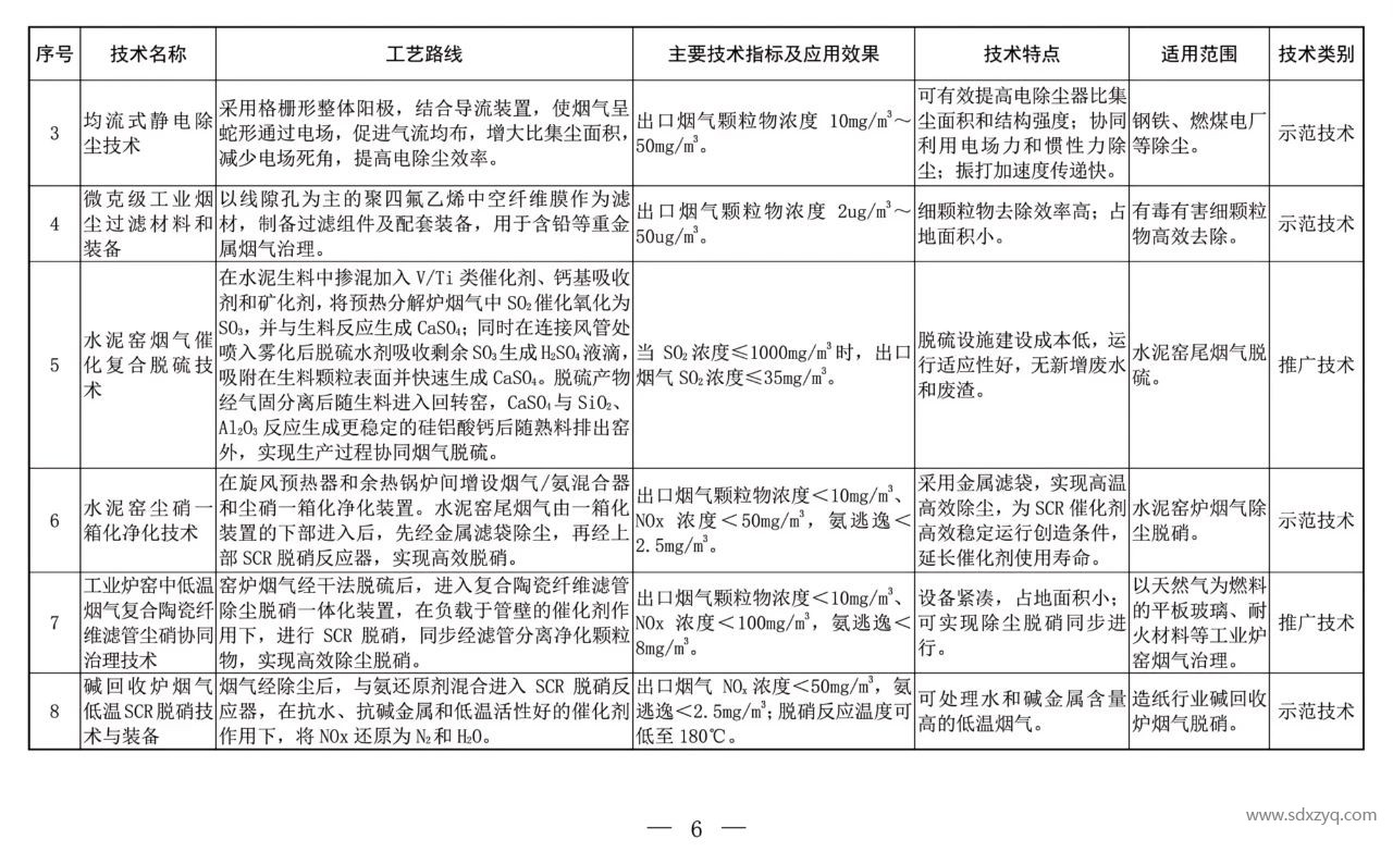 本次征求意見的《目錄》共有19項技術,覆蓋了除塵、脫硫脫硝、VOCs治理、惡臭氣體等多個大氣污染防治的細分領域。這些技術被分為推廣技術和示范技術兩大類,其中推廣技術6項,示范技術13項。推廣技術指的是那些經過實踐證明成熟可靠、治理效果穩定且經濟合理的技術,而示范技術則是指具有創新性、技術指標先進、治理效果好,并基本達到實際工程應用水平的技術。