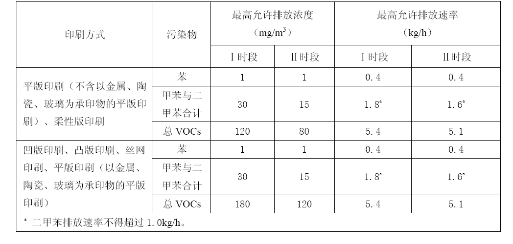 印刷行業揮發性有機化合物排放標準