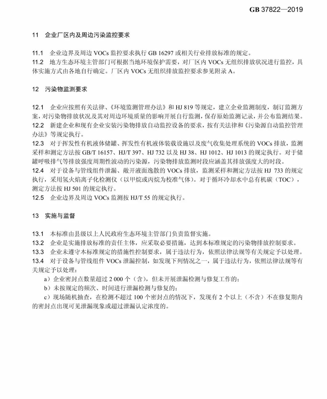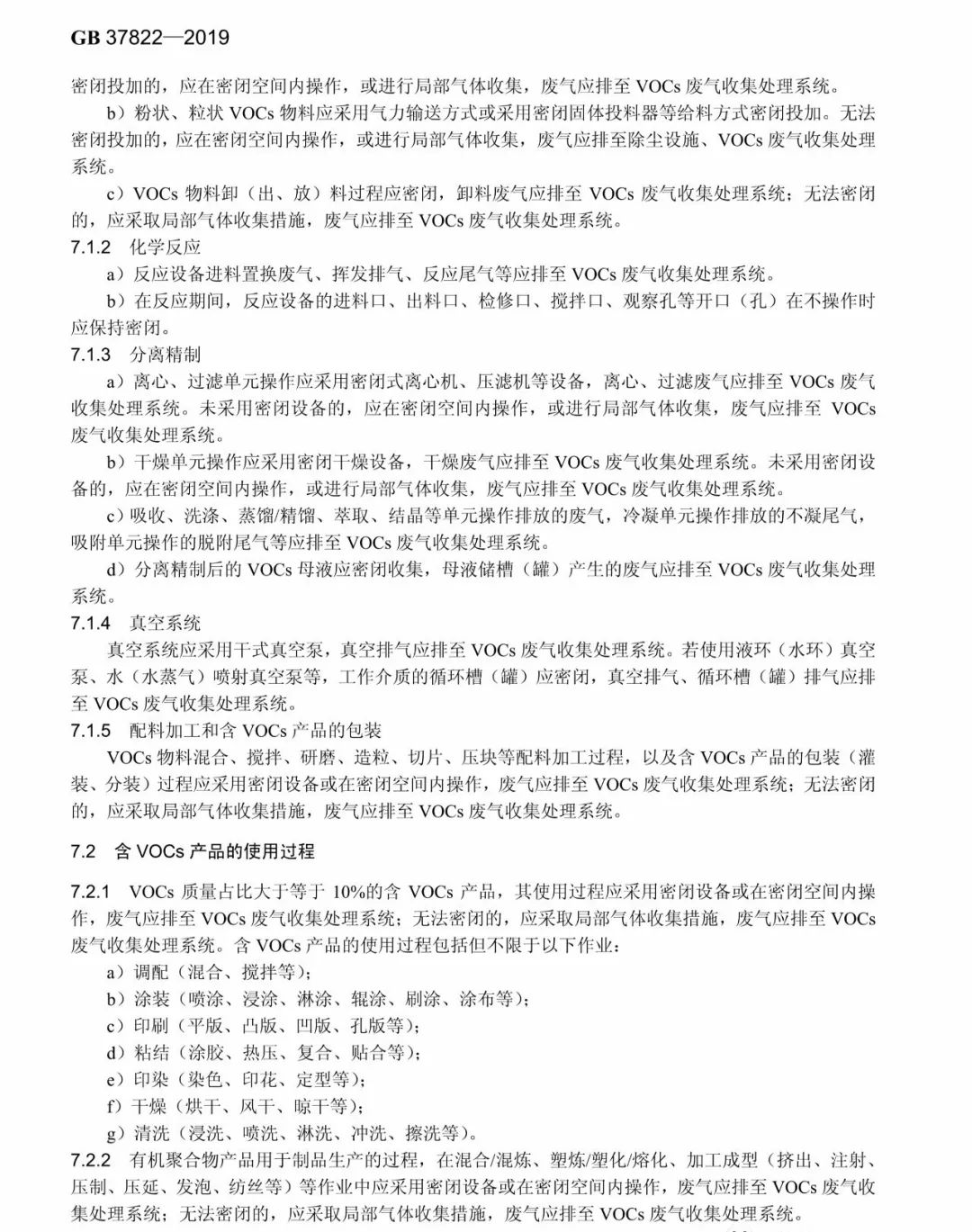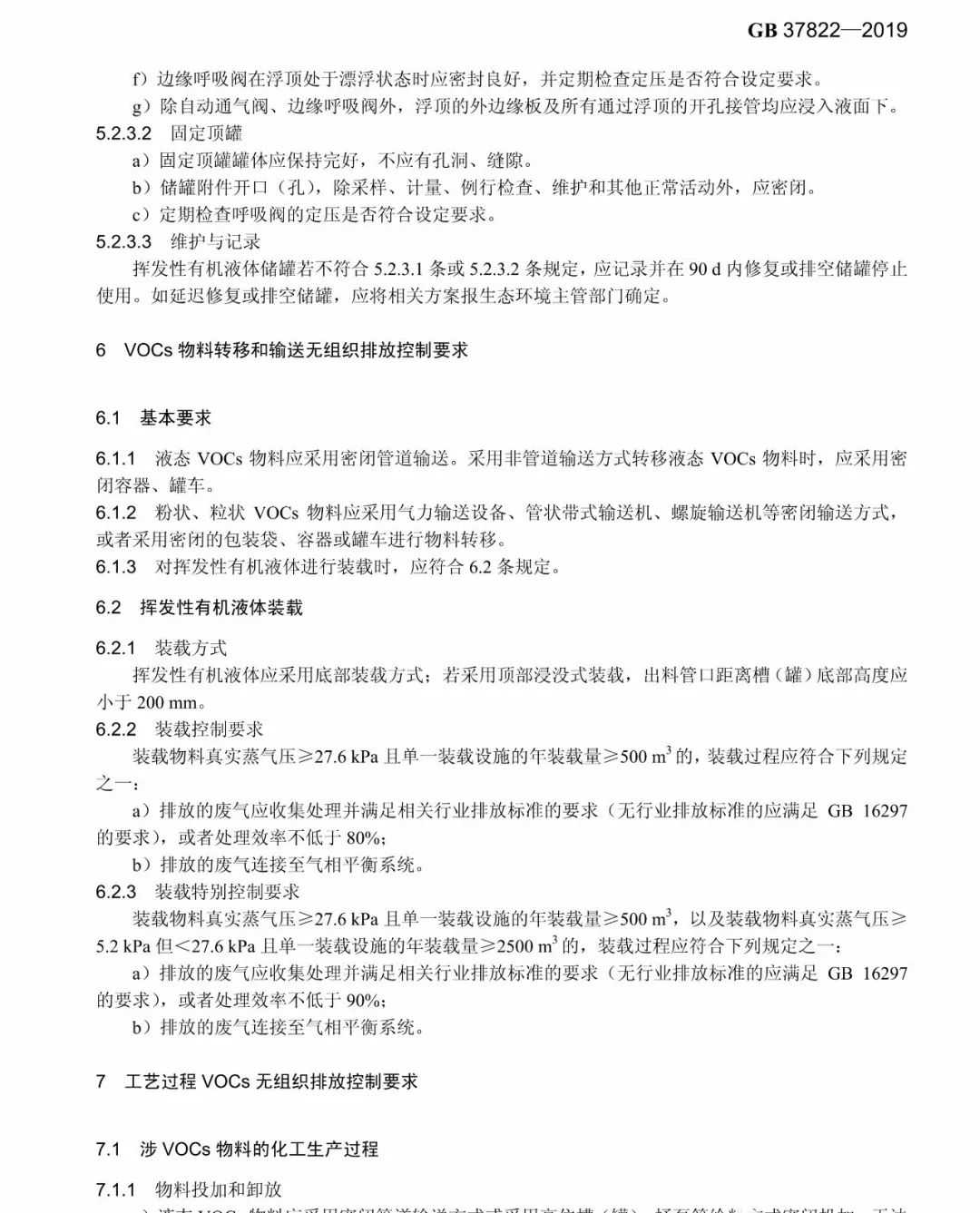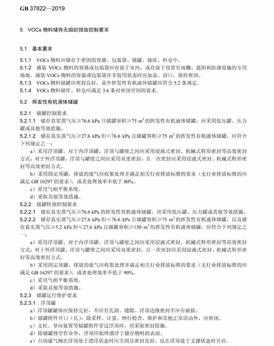 標準規定了 VOCs物料儲存無組織排放控制要求、VOCs物料轉移和輸送無組織排放控制要求、工藝過程 VOCs無組織排放控制要求、設備與管線組件 VOCs泄漏控制要求、敞開液面 VOCs無組織排放控制要求,以及 VOCs無組織排放廢氣收集處理系統要求、企業廠區內及周邊污染監控要求。