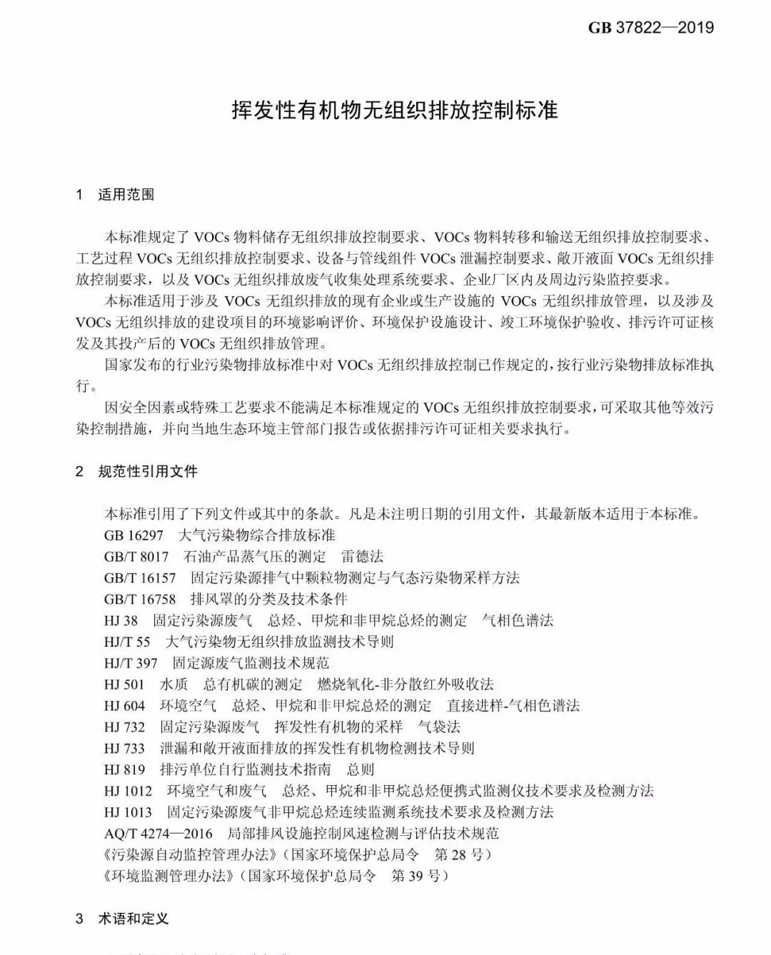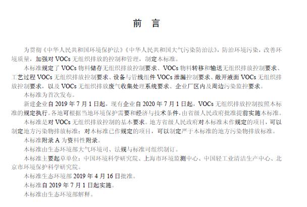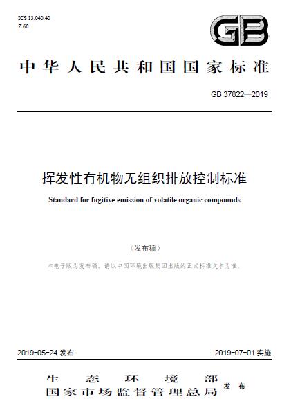 日前,環境部發布了《揮發性有機物無組織排放控制標準》(GB 37822—2019)。