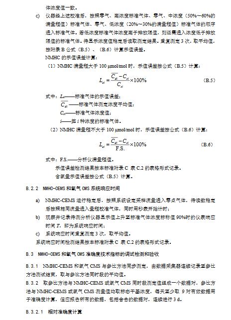 9.3.2.1非甲烷總烴技術(shù)指標(biāo)要求見本標(biāo)準(zhǔn)表1,操作步驟和計算公式按照HJ1013中7.2現(xiàn)場檢測要求和方法及本標(biāo)準(zhǔn)附錄B相關(guān)要求執(zhí)行。準(zhǔn)確度驗收時,待測NMHC-CEMS與參比方法同步對現(xiàn)場排放非甲烷總烴進(jìn)行測量。參比方法可選用HJ38,也可選用國家制訂發(fā)布的其它非甲烷總烴測試方法標(biāo)準(zhǔn)。