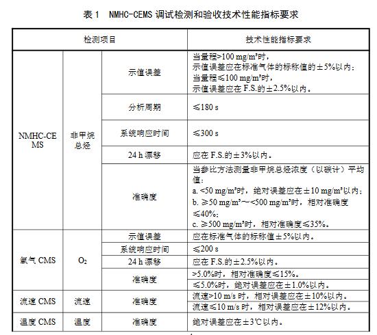 a)NMHC-CEMS分析周期;b)NMHC-CEMS系統(tǒng)響應(yīng)時間;c)NMHC-CEMS零點漂移、量程漂移;4d)NMHC-CEMS示值誤差;e)NMHC-CEMS準(zhǔn)確度;f)流速CMS準(zhǔn)確度;g)流速CMS速度場系數(shù);h)流速CMS速度場系數(shù)精密度;i)溫度CMS準(zhǔn)確度;j)濕度CMS準(zhǔn)確度。