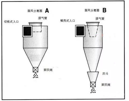 旋風(fēng)除塵器的形狀是影響分離效率的重要因素。例如,如果入口尺寸,錐體尺寸,排氣管,以及排放口不一樣,兩個(gè)相同筒徑的旋風(fēng)分離器會(huì)有相當(dāng)大的效率差別。