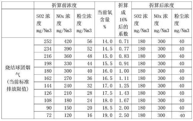 4)對于帶式焙燒機(jī)而言,濃度按氧含量16%折算并不科學(xué),因?yàn)閹奖簾龣C(jī)的排氣量包括了冷卻廢氣,而燒結(jié)機(jī)的廢氣并沒有包括環(huán)冷廢氣。帶式焙燒機(jī)應(yīng)該按18.5%折算為科學(xué)。