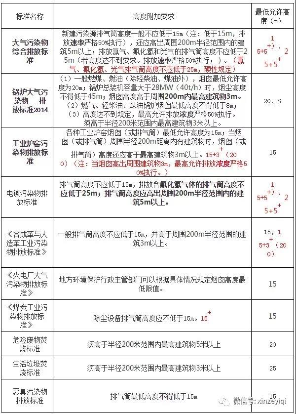 二、各大氣排放標準對排氣筒高度的規(guī)定