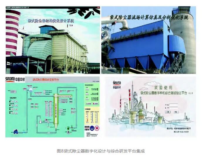 2008年初,我們開始了“袋式除塵器數字化設計與綜合研發平臺”的研發工作,歷時10年,針對袋除塵器產品創新研發的全過程,包括結構、流場、過濾、清灰過程,以數字化設計技術為基礎,創新研發手段,準確高效解決實際應用問題,不斷提升袋除塵器產品綜合性能指標,構建了袋式除塵器產品研發數據庫,分別開發了“袋式除塵器流場技術仿真分析優化系統”、“袋式除塵器結構優化設計系統”,建成了“袋式除塵器綜合測試平臺”、“袋式除塵器綜合驗證平臺”和袋式除塵器性能綜合實驗基地(圖7、8)。