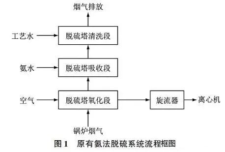 江蘇華昌化工股份有限公司熱電廠原氨法脫硫建設相對較早,系統構成相對簡單,主要包括煙氣的吸收、氧化、增濃、加氨、出料和輔助等系統。