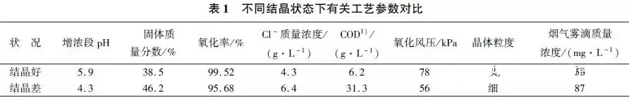 表1為不同結晶狀態下,2個硫酸銨溶液樣品的有關工藝參數對比。