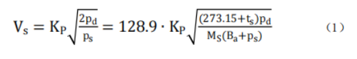 SVPT-100 型溫壓流監(jiān)測儀是基于傳統(tǒng)皮托管的差壓測量原理設(shè)計(jì)的。測量時(shí),將“S”型皮托管插入管道中,并使皮托管的全壓和靜壓測孔中心軸線固定在過流斷面中心且與流線方向一致,全壓測孔正對氣流方向,同時(shí)靜壓測孔背對氣流方向。煙氣的流速與其動(dòng)壓平方根成正比,根據(jù)測得某測點(diǎn)處的動(dòng)壓、靜壓以及溫度等參數(shù),測點(diǎn)氣流速度 Vs 按式(1)計(jì)算